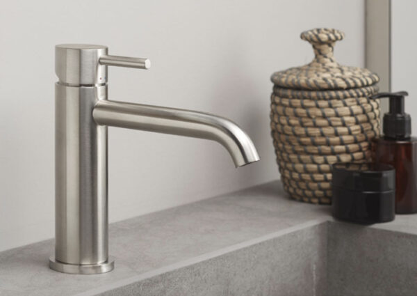 Linee più fluide e ricercate interpretano il design italiano in chiave elegante, con una collezione versatile di rubinetti in diverse finiture per ambienti moderni.