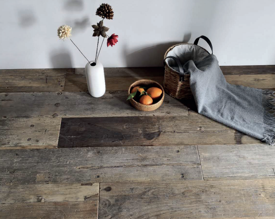 Grezzo con Prima Patina: Utilizzo di legno di recupero per un effetto vissuto e naturale, con una prima patina che conferisce un carattere unico e autentico.